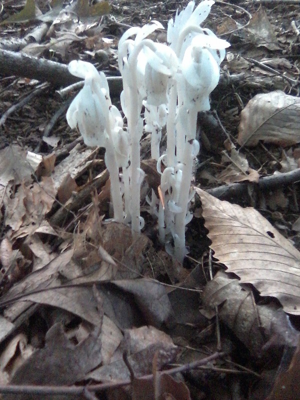 Indianpipe Monotropa uniflora a plant lacking in chlorophyll parasitic upon fungus and only seen aboveground when flowering.