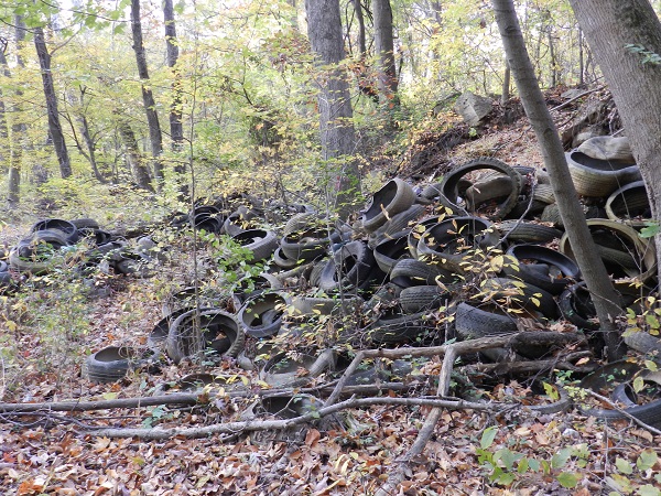 and counted over 200 waste tires along the embankment, in the floodplain and