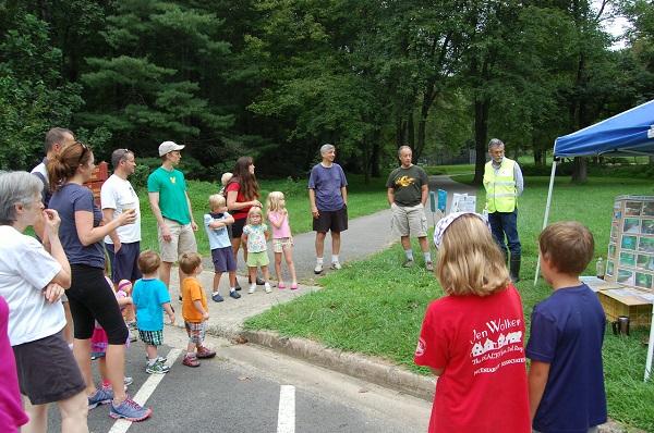 Friends of Accotink Creek joined a few friends and neighbors of the Long Branch central tributary for a morning nature walk through Rutherford Park, discovering native and invasive plants, insects, erosion, and lots of tiny fish.