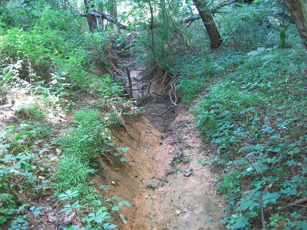 Gullies continue to grow while funds are misdirected to erosion-aggravating asphalt.