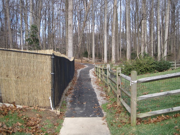 Another questionable trail paving project puts yet more of the parkland in the Accotink Creek watershed permanently under asphalt. The pleasant community pathway that meandered through Pine Ridge Park (near Fairfax Hospital) was widened and the habitat beside it bulldozed away. The paved trail and the constant mowing it will require will provide an avenue for invasive alien plant species to colonize. The ability of the Fairfax County Park Authority to find money for ever more pavement while its budget is cut year after year and other needs go unmet is remarkable. Meanwhile other county agencies are spending tens of millions trying to counter the erosion and stream degradation caused by excess pavement.