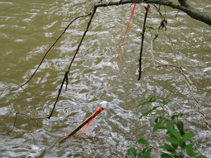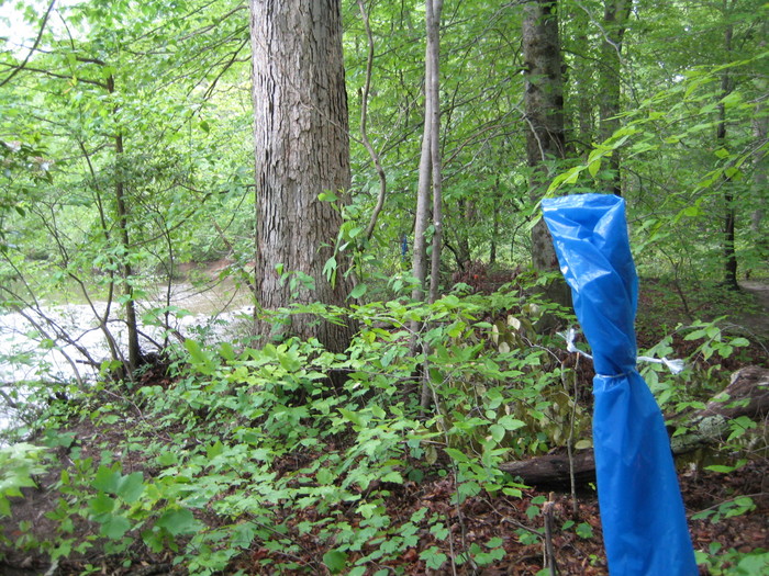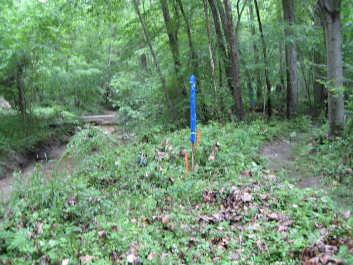May, 2008: Confusing, too many stakes at Lake Accotink Park office spur trail