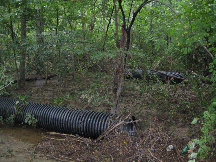 The permanent culverts being installed on year-round tributaries seem to give only lip service to fish passage. There are drop-offs on the downstream sides that seem insurmountable for the small fish present in these tributaries. If fish do manage to leap over, they will face a lenghty swim without resting points through the shallow flows inside corrugated steel pipes. Although the Park Authority maintains that sedimentation will soon render these culverts indistinguishable from the rest of the streambed, we remain dubious.