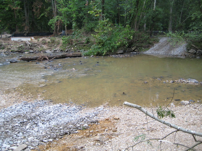 On September 6, 2008, Tropical Storm Hannah delivered approximately 7 inches of rain in Springfield This is greater than the 10-year rainfall event that the CCT bridges are designed for. I went to the site of the trail paving around 5:30 pm in the area about a mile downstream of the LAP dam, where the clearcut is for the first bridge crossing below the dam. I could only get to the edge of the steep slope above the clearcut. The water flooded the entire valley, up to the steepest slopes. The current at the edge was about 5 miles per hour, and the creek was whitewater (raging fast).