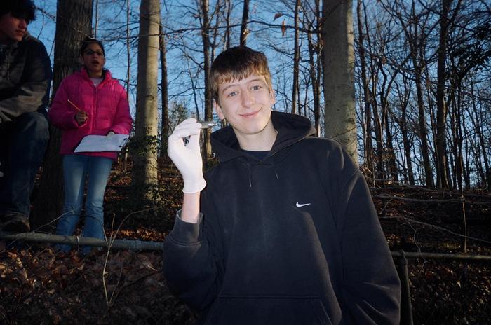 Now, that's the idea. Scour the hillside for trash before it washes into the creek! Good job!