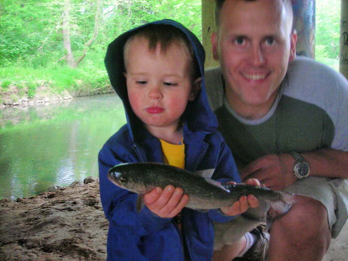 What a great day for introducing a three-year old to trout fishing at Accotink Creek!