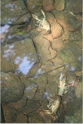 Large crayfish in clear, but deadly toxic water.
