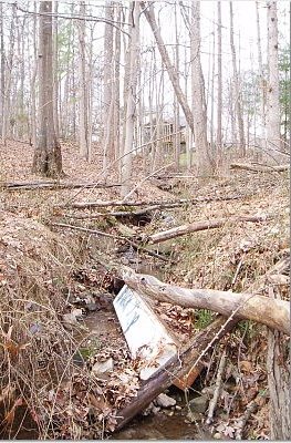 Abandoned roadbed below Fullerton Road is an obstacle to fish migration.