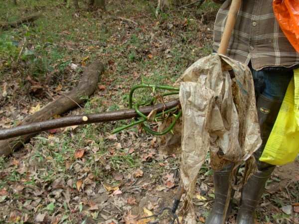 Just improvise a tool of greenbriar thorns on a stick!