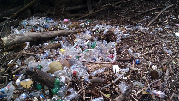 Plastic bottles, styrofoam, and other buoyant trash often accumulates in large "rafts".