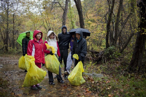 Volunteers making progress against a large raft of trash in Wakefield Park.