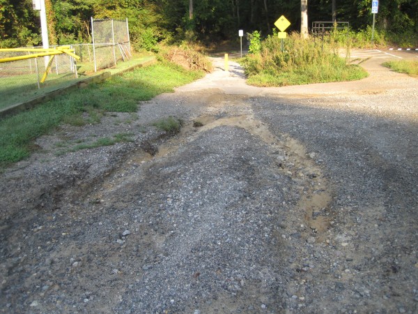Lake Accotink Park parking lot washed out by flooding - again.
