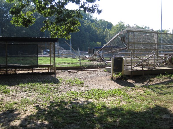 Two reports on the aftermath of Tropical Storm Lee along Accotink Creek: On Saturday, I walked along Accotink Creek south of the LAP dam to view the damage from the flood on Sept. 8, 2011, from Tropical Storm Lee. I recorded 9.25 inches of rain for the 24-hour period from Wednesday evening to Thursday evening (rain gauge in my yard in Springfield). On Sept. 8, the lake overtopped the dam by 6 feet (according to Park staff) and flooded the lower parking lot with a raging torrent, probably 9 feet deep. Much of what was left of the pavement after Tropical Storm Hannah in 2008 was washed away. Several signs were bent over or washed out completely, and a dumpster at the far end of the parking lot was washed away from the fenced compound. The entire flood plain was underwater to Old Keene Mill (and probably farther south, but I walked only as far as Byron Park). The photos show blocked culverts (these were built only 3 years ago and were not designed for a flood plain, although they are clearly in one). Serious erosion is now occurring around the sides of the culverts, because the water was forced out of the tributary paths due to blocked culverts. The trail at the foot of the dam was repaved recently, but that new asphalt was washed away on Thursday. That asphalt is now in Accotink Creek (some chunks were still visible in the water) or in the Potomac River. This is an example of poor planning by the Park Authority. That stretch of trail is the most vulnerable to flooding. A washout was inevitable, and the dangerous chunks of asphalt were left to do further damage downstream. Byron Park had a huge old log (at least 3 feet dbh (diameter breast height) and 20+ feet long) washed onto the chain link fence, and the playing fields were washed over. Much of the chain link fencing was bent over. A side tributary that feeds into Accotink mainstem along Essex Avenue washed out the north end of Middlesex Road. The water main to the lower end of Essex Avenue homes was shut off overnight. The road is now impassable at that end with a huge gap washed out (see photo), although the water service was restored. Although the rain event was significant, the damage was much more severe than it should have been with better planning by the county, state, etc. The I-495 HOT lane construction caused the clearing of many acres of trees and corresponding impervious paving upstream. The pavement at LAP caused an imperious surface for water to speed across. Alongside the paved Cross County Trail, the ground was visibly scoured. Away from the trail, the vegetation clearly shows the slowed water, and erosion was reduced. Much of the damage from this rainfall event could have been prevented with better planning. Text and Photos by Susan Jewell