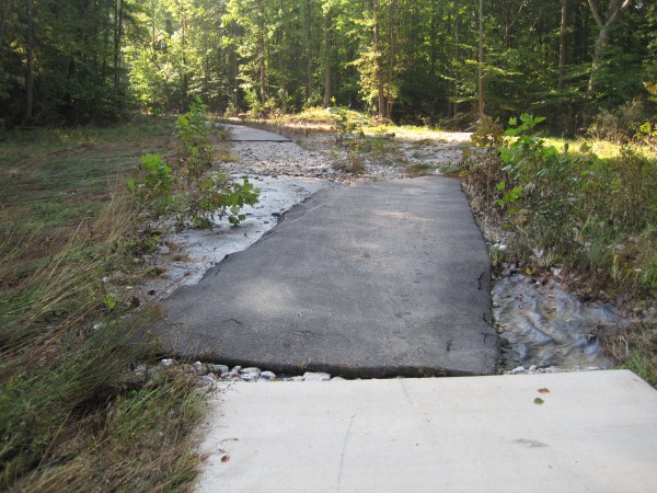 Chunk of new trail pavement washed into Accotink Creek.
