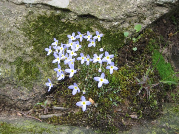 Native wildflower Quaker Ladies (Houstonia caerulea) in bloom near Fullerton Road