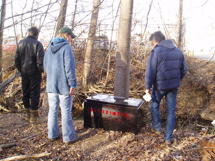 EPA stream monitoring device. Left to right; Philip Latasa, Jeanne Classen and Bryant Thomas