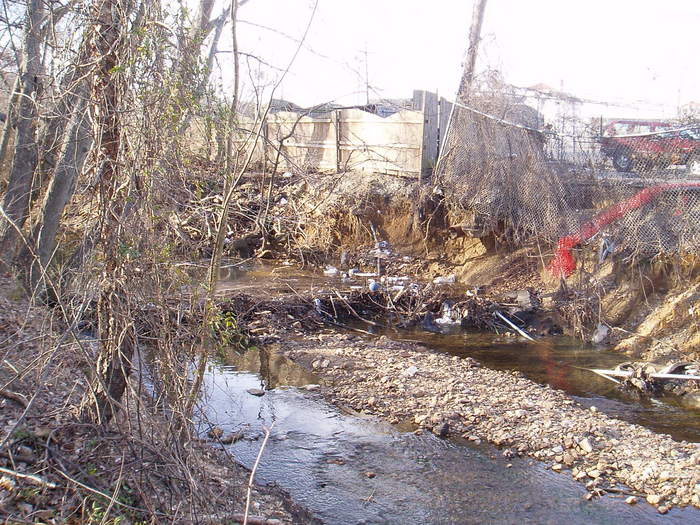 Eroding bank near the Bowl America Parking lot, just north of Old Lee Highway
