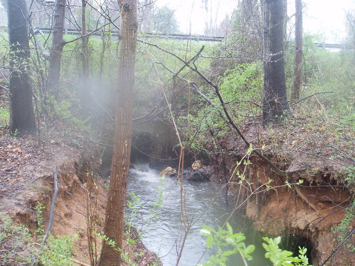 Storm drain cross street from Ravensworth Shopping Center is eroding a big ditch that leads to Accotink Creek.