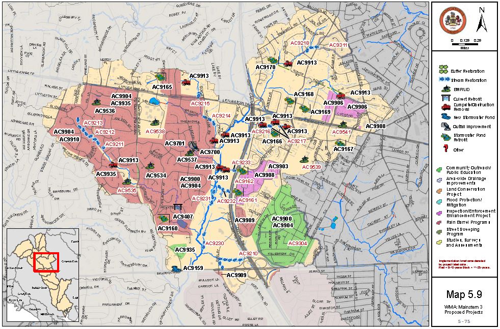 Wakefield Run receives high rates of runoff from east of I-495 and is severely eroding. The restoration project aims to arrest erosion and stabilize the streambed west of I-495.