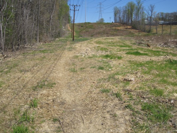 Perplexed mountain bikers are creating multiple trails along reseeded access road.